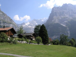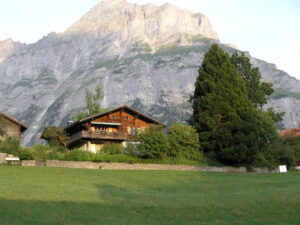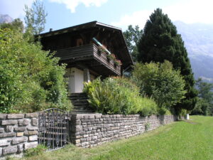 Das Chalet liegt nicht an einer Durchgangs-Strasse. Geniessen Sie die sehr saubere Luft und die Ruhe! Und den wunderbaren Ausblick ins Tal und in die Berge. Auf 1’111 Metern über Meer über dem Dorf Grindelwald gelegen. Auf Vorder- und Rückseite des Grundstücks von Landwirtschafts-Land umgeben (Wiesen).