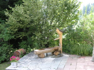im Sommer: grosser privater Garten mit Sitzplatz, 8,5 x 4m Aussen-Pool zur Alleinbenützung (in Betrieb: 8.6.-13.9., beheizt 21-23C, mit Kindersicherungs-Abdeckung, Sand-Filter-Anlage, Bade-Tücher), Liegewiese, Gartenpavillon, Garten-Mobiliar, alter Baumbestand, Holz-Brunnen (Trinkwasser), grosser Sitzplatz mit Esstisch und Holz-Eckbank.